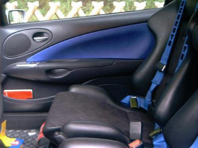 Halbschalensitze mit Gurtdurchführung, schwarzes Kunstleder und Textil